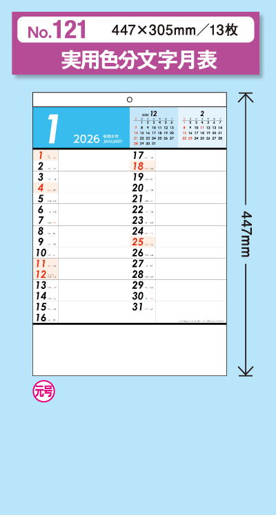 ※ カレンダーの種類により、名入れサイズが変わります。