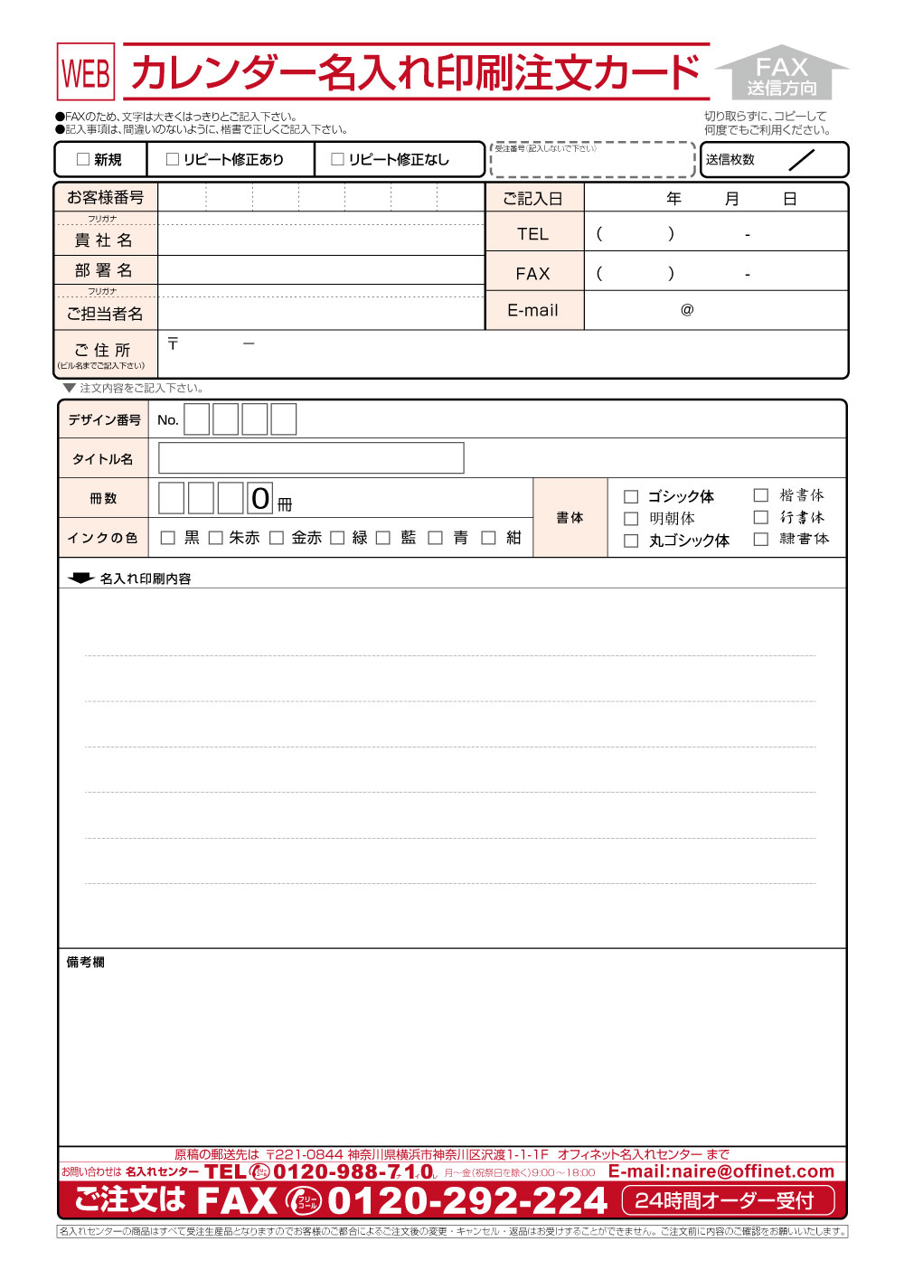 | カレンダー名入れ注文書 | ダウンロード (PDF) | ダウンロード (JPEG) |