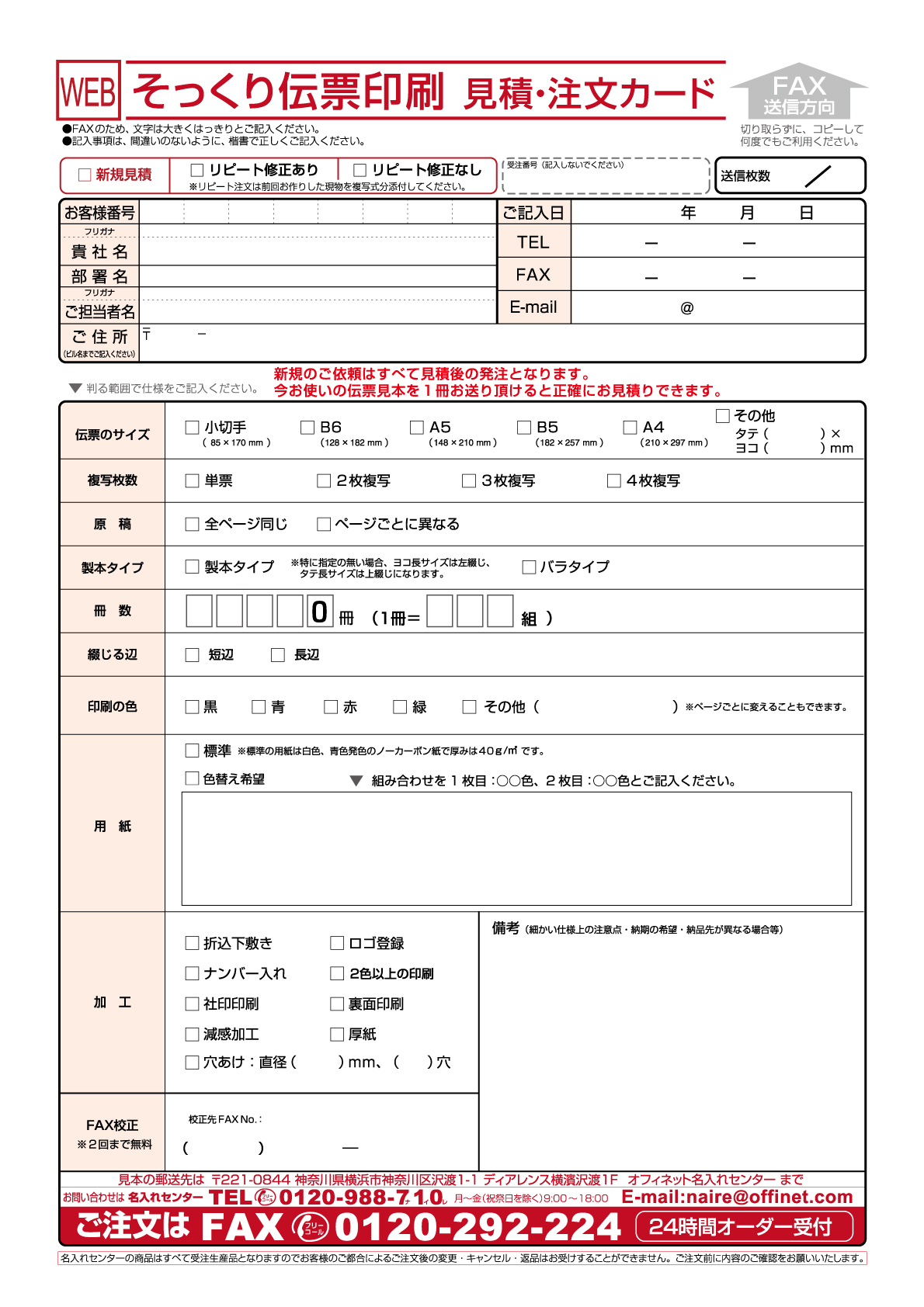 そっくり伝票印刷サービス見積・注文 そっくり伝票印刷サービス注文カードPDF そっくり伝票印刷サービス注文カードJPG