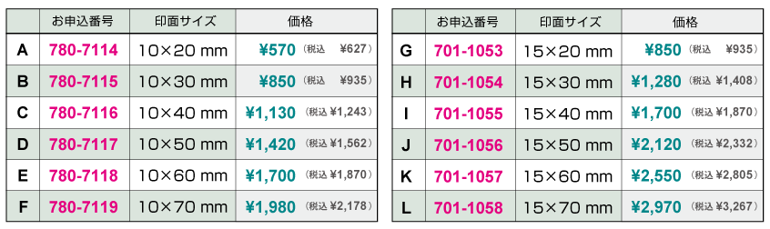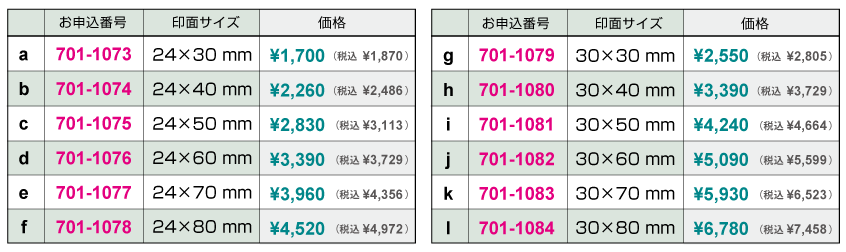 ※ 2026年1月5日より各種ゴム印の販売価格を改定いたしました。