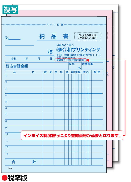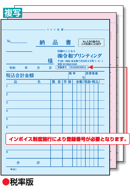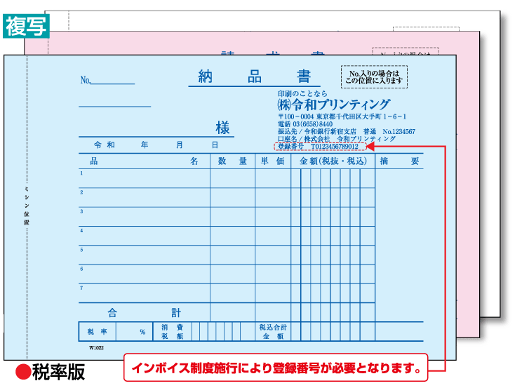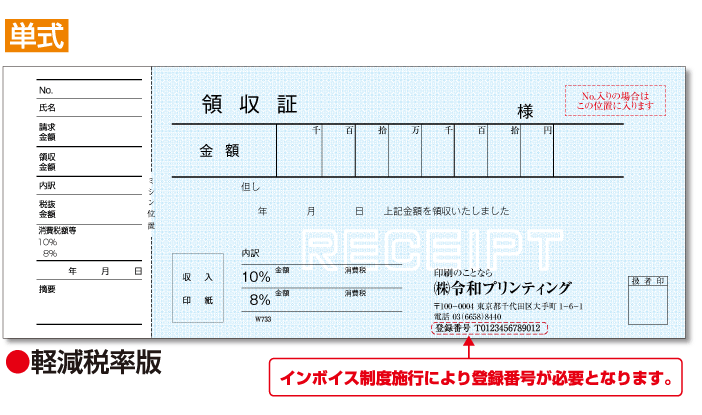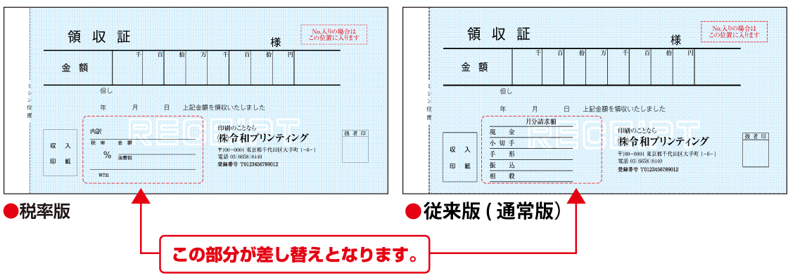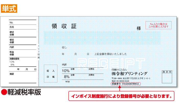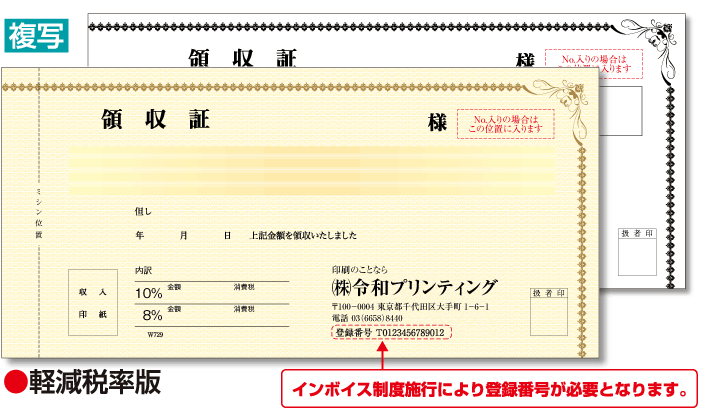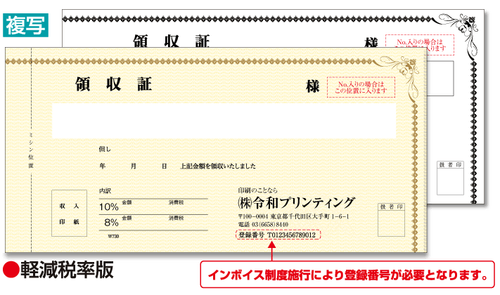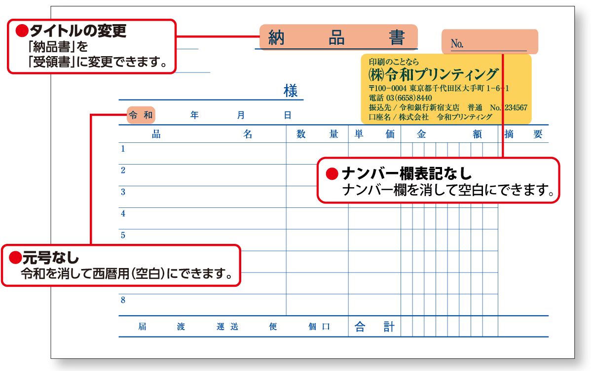 通しナンバー入れや、社印朱刷も可能。ご希望のデザインよりお選びください。