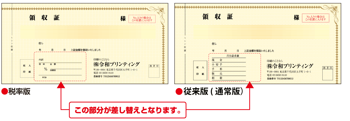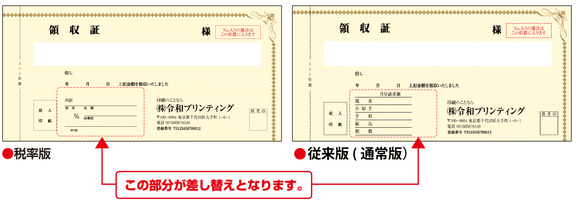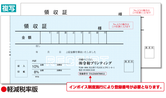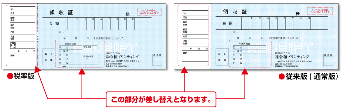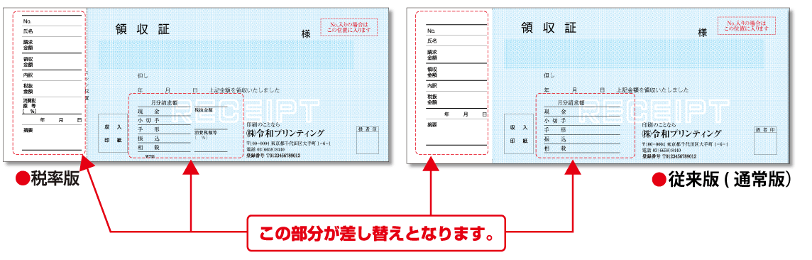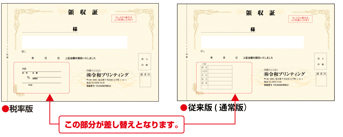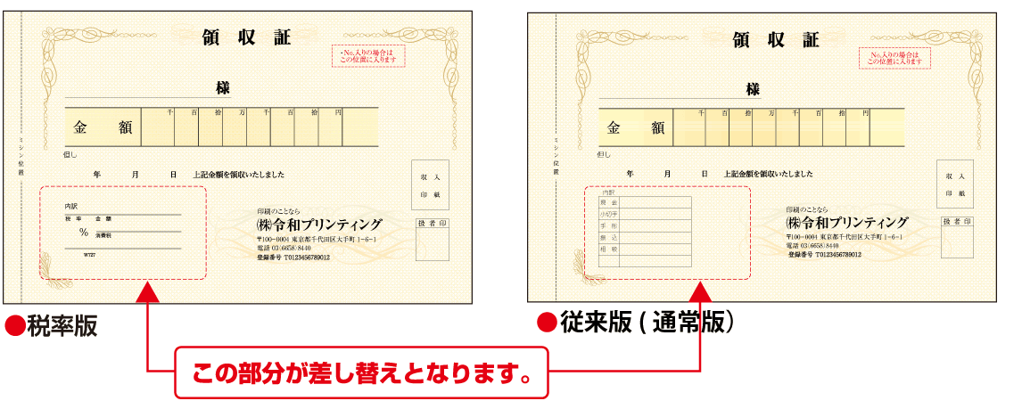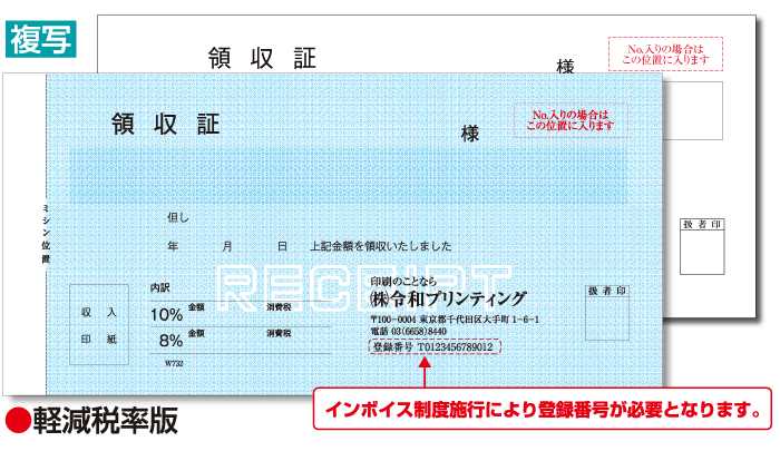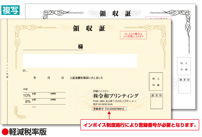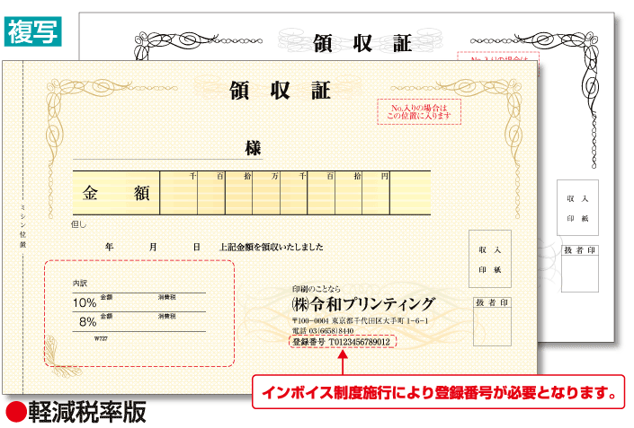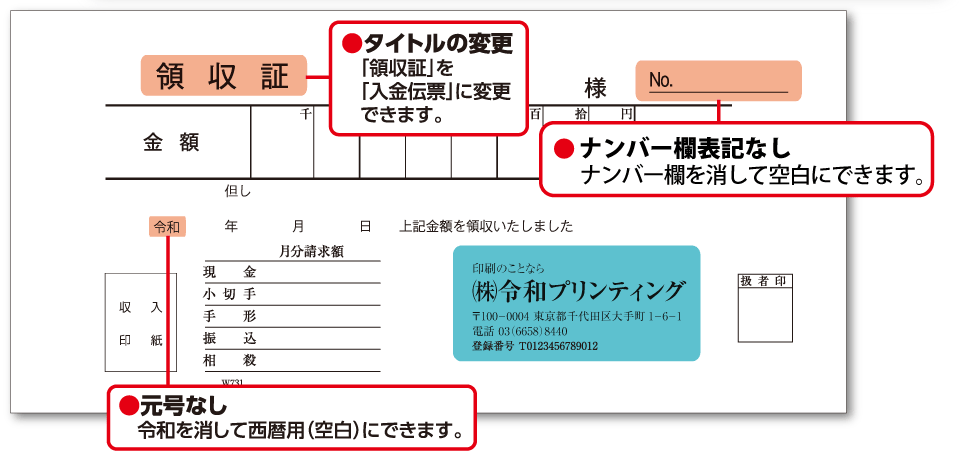 ※ 金額には領収証本体と版下代、名入れ印刷代が含まれます。(オプション料金は別途)