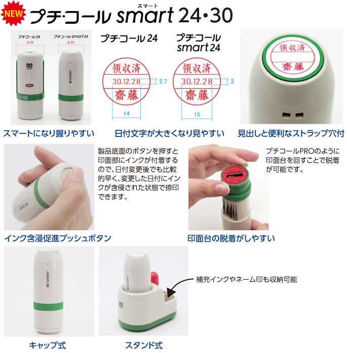 | プチコール smart24 印面サイズ:24mm | プチコール smart30 印面サイズ:30mm | |